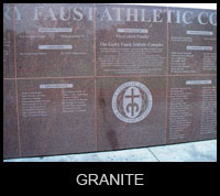 Sandblasted Signs Sandblasting is the lifeblood of our company and our craftsman take great pride in producing the highest quality blast as possible. Our history and relationships with suppliers allows us to offer an unmatched supply of top quality Redwood Heartwood. Everyday, we blast hundreds of square feet of hard woods such as Mahogany, Red Oak, Maple and Walnut. Natural stones, Granite, Corian and HDU (High Density Urethane) are other substrates we work with everyday. You can call us directly or request a quote through the website. We look forward to working with you and thank you for your business. |